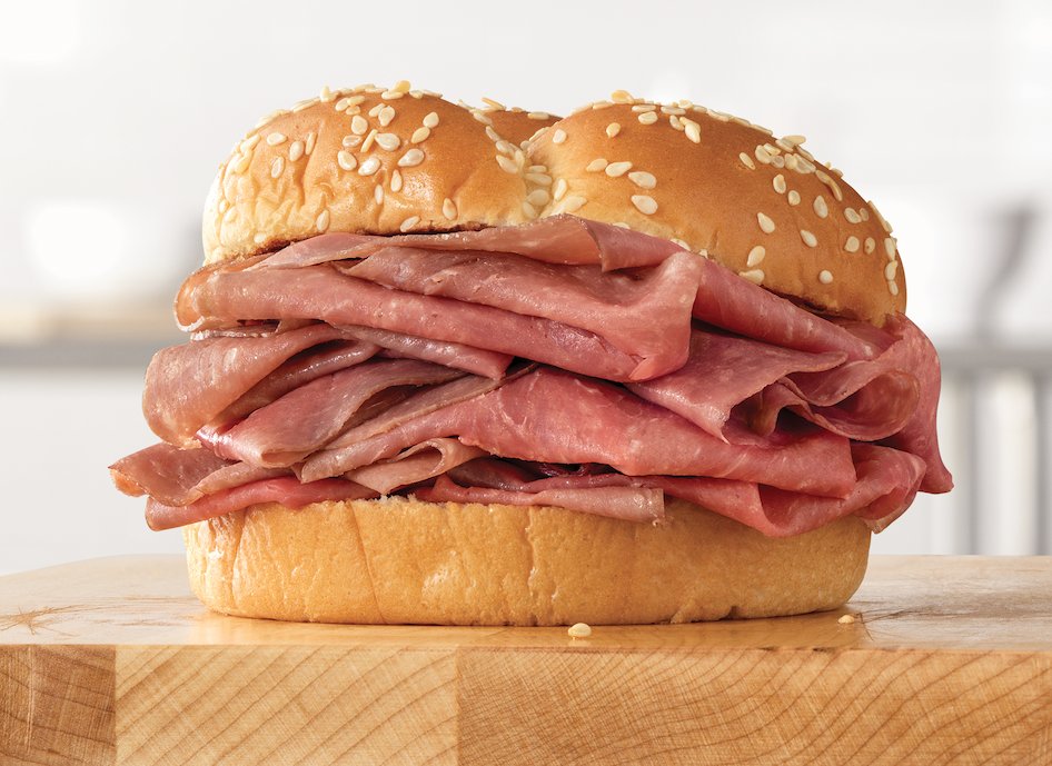 Thinly-sliced, smoked ham with melty Swiss cheese on a sesame bun. TM & 2025 Arbys IP Holder, LLC.Visit arbys.com for nutritional and allergen information.